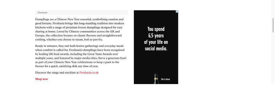 作为长期深耕英国及欧洲市场的中国食品品牌,香源的水饺产品已多次获得英国食品类奖项认可,并被主流媒体选为中国新年饮食文化的代表之一。相关报道不仅聚焦产品本身,也呈现了中国新年在海外被理解和表达的方式。