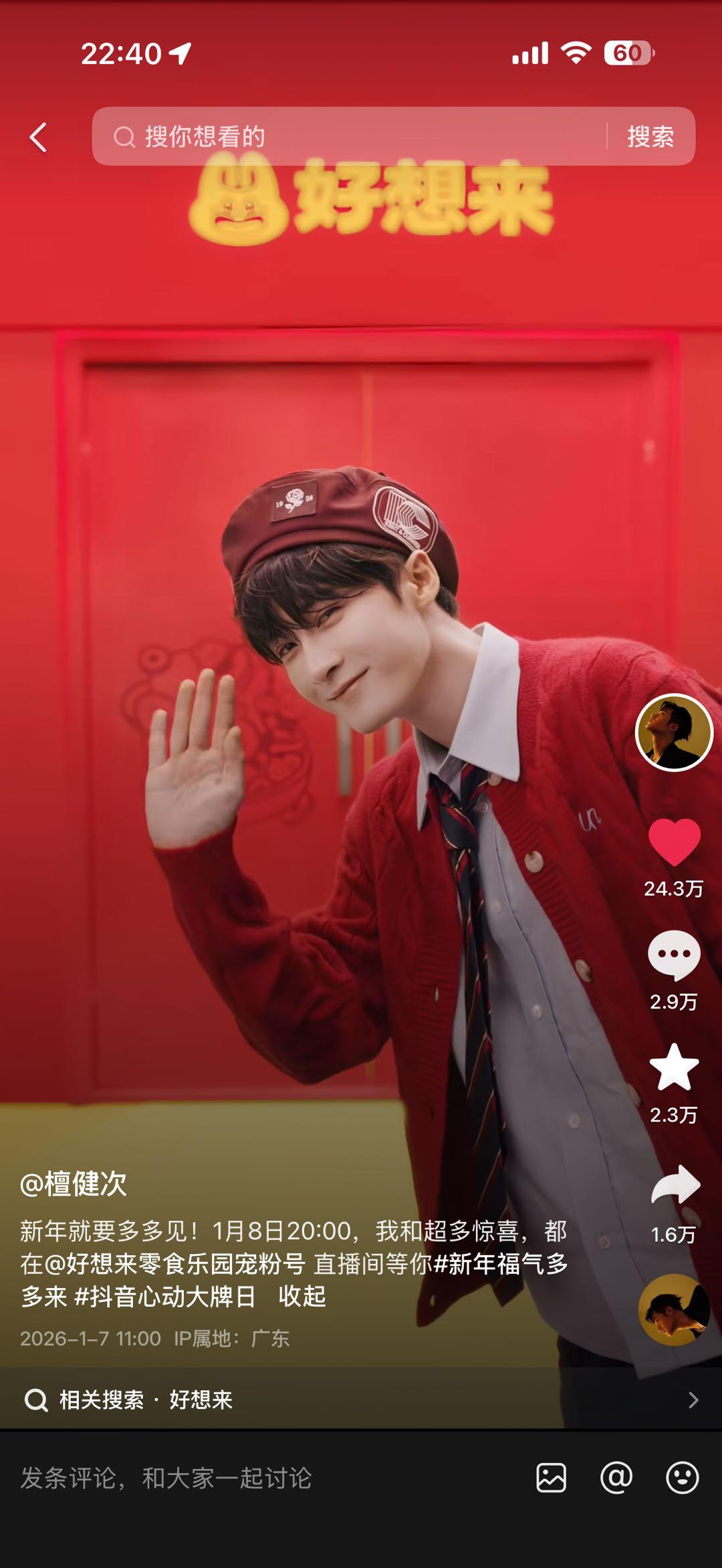 上好想来抖音直播间,囤满满福气年货。未来,「抖音心动大牌日」将继续携手更多优质品牌,为消费者的品质生活带来持续惊喜。