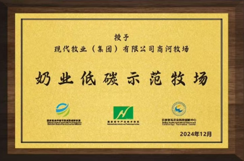 活动期间,国家畜禽养殖节粮减排创新联盟、国家奶牛产业技术体系、北京京瓦农业科技创新中心对现代牧业旗下牧场的减碳生产水平进行评估后,共同认定现代牧业(商河)有限公司、现代牧业(宝鸡)有限公司、现代牧业(合肥)有限公司三个牧场为中国奶业低碳示范牧场,并举行揭牌仪式。