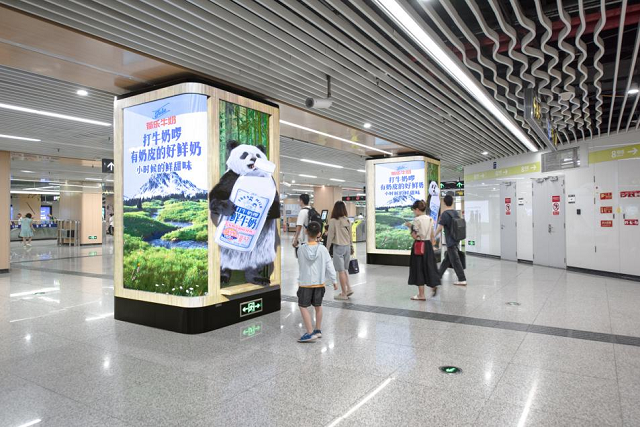 菊乐打牛奶啰登陆成都地铁裸眼3D大屏